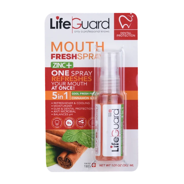 همانطور که میدانید انواع مختلفی از خوشبوکننده دهان وجود دارند، اما برای دریافت بیشترین اثربخشی، میبایست خوشبوکننده دهانی را انتخاب کرد که حاوی ترکیبات فعال ضد میکروبی، ضدالتهاب و کنترلکننده بوی بد دهان باشد و در عین حال کمترین عوارض را برای شما داشته باشد. بعضی از خوشبو کنندههای دهان، اثرات ضد باکتریایی ندارند و صرفاً برای ایجاد احساس خنکی و تازگی در تنفس استفاده میشوند، اما خوشبوکنندههای دهان لایفگارد انتخاب مناسبی برای شما هستند، زیرا خوشبوکنندههای دهان لایف گارد حاوی ترکیباتی مثل زینک، سالوادورا پرسیا بارک رووت اکسترکت، متیل سالیسیلات، عصاره بابونه، عصاره نعناع، عصاره لیمو و عصاره دارچین هستند که با پیشگیری و کنترل رشد میکروبها در دهان علاوه بر اینکه به عنوان خوشبوکننده دهانی و رفع بوی بد دهان بعد از مصرف دخانیات و بعد از صرف غذا کاربرد دارند با عملکرد چندگانه مانند حس خنکی و تازگی، حفظ رطوبت دهان و تنظیم pH دهان موجب بهبود سلامت دهان و دندان میشود و از پوسیدگی دندانها و ایجاد پلاکهای دندانی جلوگیری میکند. همچنین خوشبوکنندههای دهان لایف گارد، یک محصول غیرالکلی است بنابراین این محصول برای همه افراد و سلیقهها قابل استفاده است. خوشبوکنندههای دهان لایفگارد در دو مدل خوشبو کننده دهان نعناع/لیمو و دارچین/نعناع طراحی و فرموله شدهاند که عموماً باعث رفع بوی بد دهان و حس تازگی به صورت اختصاصی در کنترل پوسیدگی و پلاکهای دندانی عمل میکنند و با داشتن ترکیبات فعال ضد التهاب، به درمان بیماریها و التهابات لثه کمک میکنند.