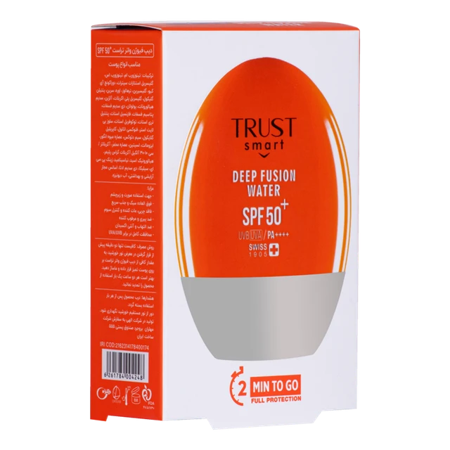 دیپ فیوژن واتر تراست اسمارت با +SPF 50 یکی از انواع این محصولات ضد آفتاب است که علاوه بر داشتن ترکیبات فعال مهار کننده رادیکالهای آزاد، حاوی ترکیبات فعال آنتیاکسیدان، آبرسان و تقویت کننده سد دفاعی پوست است. این محصول با مراقبت از پوست در برابر پرتوهای مضر UV، از آسیب سد دفاعی پوست جلوگیری کرده و همزمان با پخش بالا به آبرسانی و نرم شدن پوست کمک میکند.