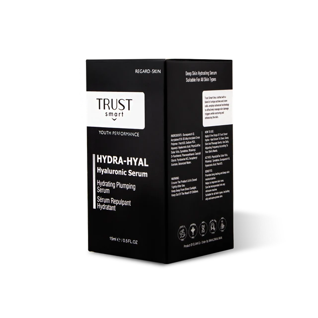 هیالورونیکاسید یا سدیم هیالورونات پلیساکاریدی است که به صورت طبیعی در بدن ما وجود دارد و یکی از ترکیبات اصلی تشکیل دهندهی ماتریکس خارج سلولی است. این ترکیب با توانایی نگه داشتن ملکولهای آب با ظرفیت چندین برابر بیشتر از وزن ملکولی خود، سلولهای پوستی را آبرسانی میکند. هیالورونیکاسید اتصال فیبرهای کلاژن و الاستین در پوست را استحکام میبخشد و به این ترتیب از پیری و ایجاد چین و چروک در پوست جلوگیری میکند. بنابراین هیالورونیکاسید مورد استفاده در سرم آبرسان عمیق پوست تراست اسمارت، با تقویت سد دفاعی و حفظ رطوبت پوست، از پیری پوست جلوگیری میکند.