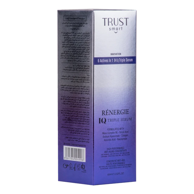 سرم سه گانه هوشمند تراست اسمارت، ترکیبی از سه نوع سرم است که در قالب یک سرم قابل استفاده است و بیشترین اثربخشی را در زمینه رفع لک و چین و چروکهای پوستی، جوانسازی پوست و مراقبت از پوست در برابر آلودگیها دارد. این محصول حاوی ترکیبات آنتیاکسیدان و پلیساکاریدی بسیار قوی است که با مهار رادیکالهای آزاد، سد دفاعی پوست را تقویت کرده و به بهبود ظاهر و حفظ سلامت پوست کمک میکند.