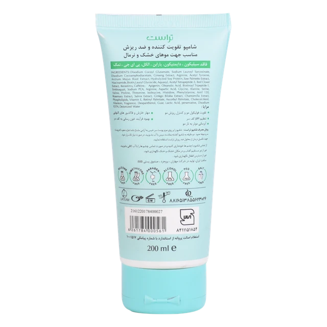 - فاقد سولفات، سیلیکون، دایمتیکون، پارابن، الکل، پی ای جی و نمک