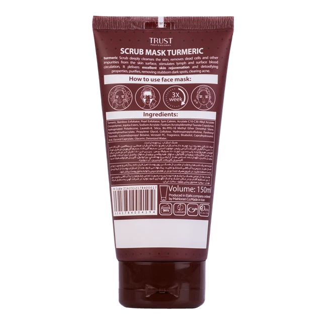 ماسک اسکراب زردچوبه تراست برای اولین بار، با استفاده از ترکیباتی که پوست را لایهبرداری کرده و به بازسازی، استحکام و جوانسازی پوست کمک میکنند، به طرز مؤثری پوست را پاکسازی کرده و تیرگی و لکهای پوستی را برطرف میکند.