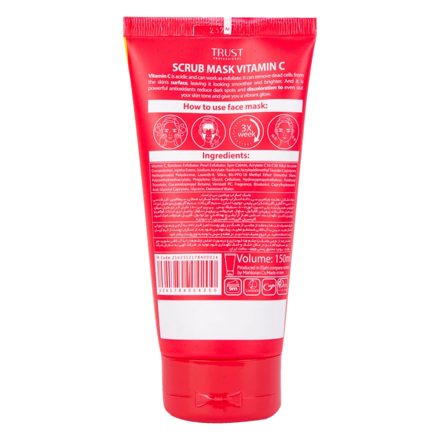 ماسک اسکراب ویتامین سی تراست برای اولین بار، با استفاده از ترکیباتی که پوست را لایهبرداری کرده و به بازسازی، استحکام و جوانسازی پوست کمک میکنند، به طرز مؤثری پوست را پاکسازی کرده و تیرگی و لکهای پوستی را برطرف میکند.
