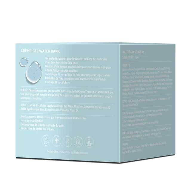کرم واتر بانک تراست اسمارت با تکنولوژیهای آکوا پورت و واتر-لاک، رطوبت پوست را به طور عمیق و بلندمدت تأمین کرده و از خروج رطوبت جلوگیری میکند. این محصول به بازسازی سد دفاعی پوست و حفظ شادابی آن کمک میکند.