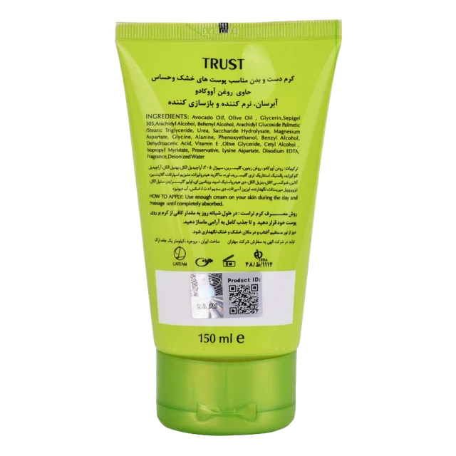کرم آووکادوی تراست، با دارا بودن روغنهای کاملا طبیعی و خالص آووکادو موجب افزایش نرمی و لطافت و یکپارچگی عملکرد پوست میشود. اثر نرمکنندگی محصول به گونهایست که پس از جذب، چربی از خود به جا نخواهد گذاشت. غنی بودن این محصول از ویتامین E علاوه بر مهار رادیکالهای آزاد و جلوگیری از آسیبهای پوستی، موجب بازسازی پوست خواهد شد. همچنین این محصول با کنترل التهابات پوستی، انتخابی مناسب برای پوستهای حساس است. از طرفی خلوص روغنهای مورد استفاده در این کرم در کنار سایر مواد موثره بکار رفته شده در محصول، موجب رطوبت رسانی طولانی مدت به پوست شده که گاها تا 24 ساعت دوام خواهد داشت.
