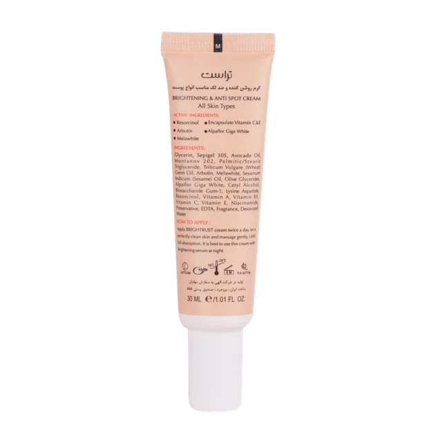 کرم روشن کننده و ضد لک تراست دارای فرمولاسیونی تخصصی است و تحت لیسانس سوئیس تولید میشود. این کرم تخصصی یکی از بهترین انتخابهای ممکن برای رفع تیرگی و لکهای پوستی است.